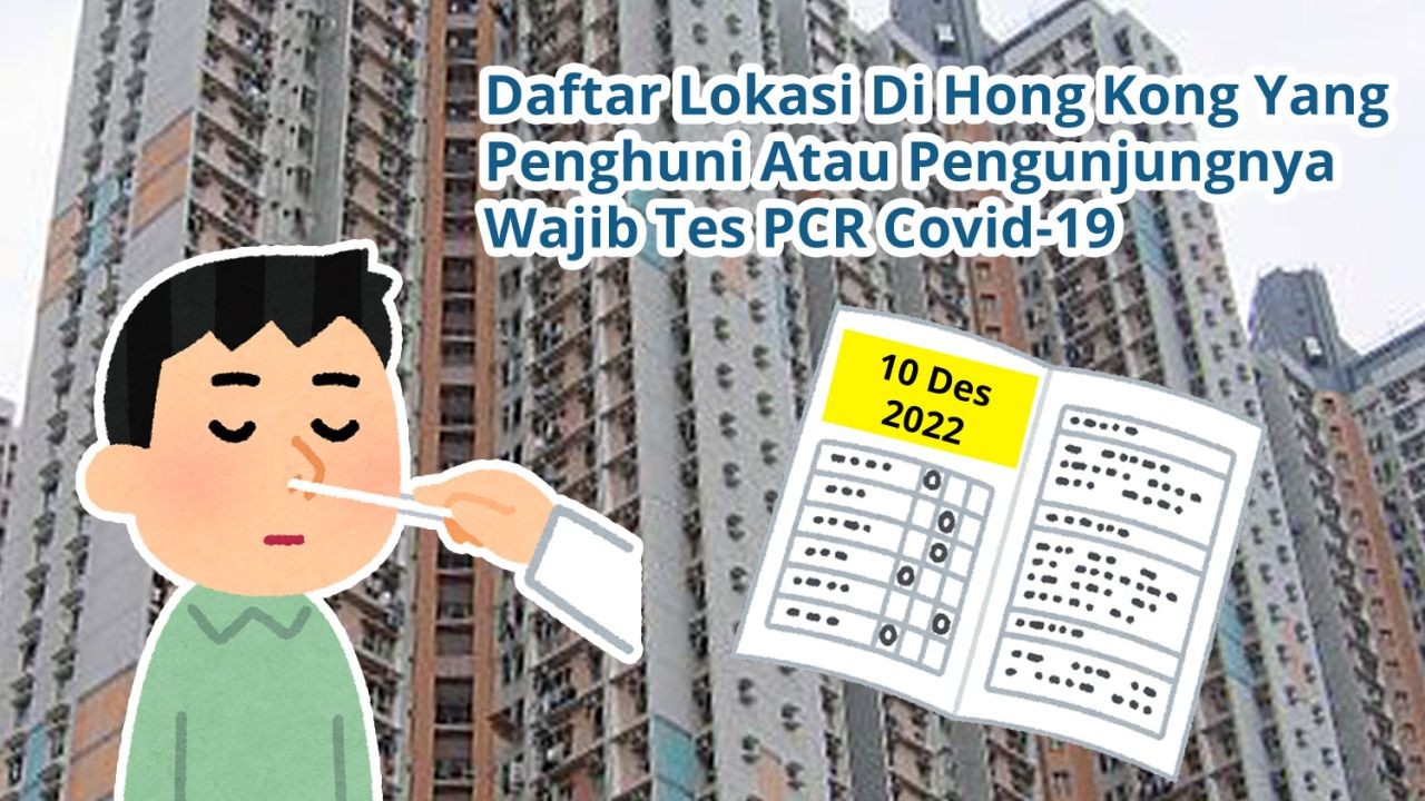 Pusat Perlindungan Kesehatan Hong Kong (Centre for Health Protection) pada tanggal 10 Desember 2022 mengumumkan daftar lokasi wajib tes PCR untuk tanggal 10 Desember 2022 bahwa setiap orang yang berada di lokasi-lokasi berikutnya pada tanggal dan jangka waktu yang tertulis dalam daftar wajib mengikuti tes Covid-19 sebelum tanggal yang telah ditentukan.