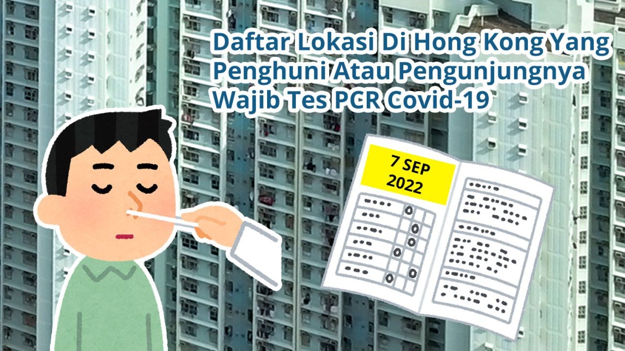 Pusat Perlindungan Kesehatan Hong Kong (Centre for Health Protection) pada tanggal 7 September 2022 mengumumkan daftar lokasi wajib tes PCR untuk tanggal 7 September 2022 bahwa setiap orang yang berada di lokasi-lokasi berikutnya pada tanggal dan jangka waktu yang tertulis dalam daftar wajib mengikuti tes Covid-19 sebelum tanggal yang telah ditentukan.