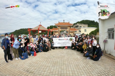 Foto bersama para Bestie As2in1, tim Telin Hong Kong dan wakil dari FamilyMaid Employment Services di pulau Kat O. [Foto: Telin Hong Kong]