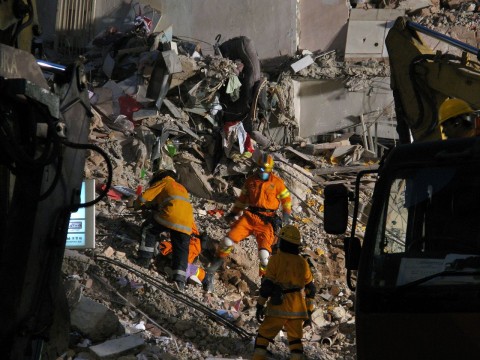 Berhubung kondisi sangat darurat, maka seluruh penghuni gedung-gedung lain dari 43-45H harus dievakuasi. Pada waktu itu sebanyak 100 petugas Pemadam Kebakaran dari unit Special Rescue Squad 特種救援隊 (dak6 jung3 gau3 wun4 deui2) dan Urban Search And Rescue Team 搜救專隊 (sau2 gau3 jyun1 deui2) beserta alat dan fasilitas untuk melakukan pencarian dan pertolongan terhadap para korban yang sedang tertimpa oleh serpihan-serpihan dari gedung yang telah roboh. Pada pukul 14.00, mereka berhasil menemukan 3 pria dan 2 wanita, di antaranya 1 wanita mengalami luka berat dan tidak lama kemudian meninggal dunia.